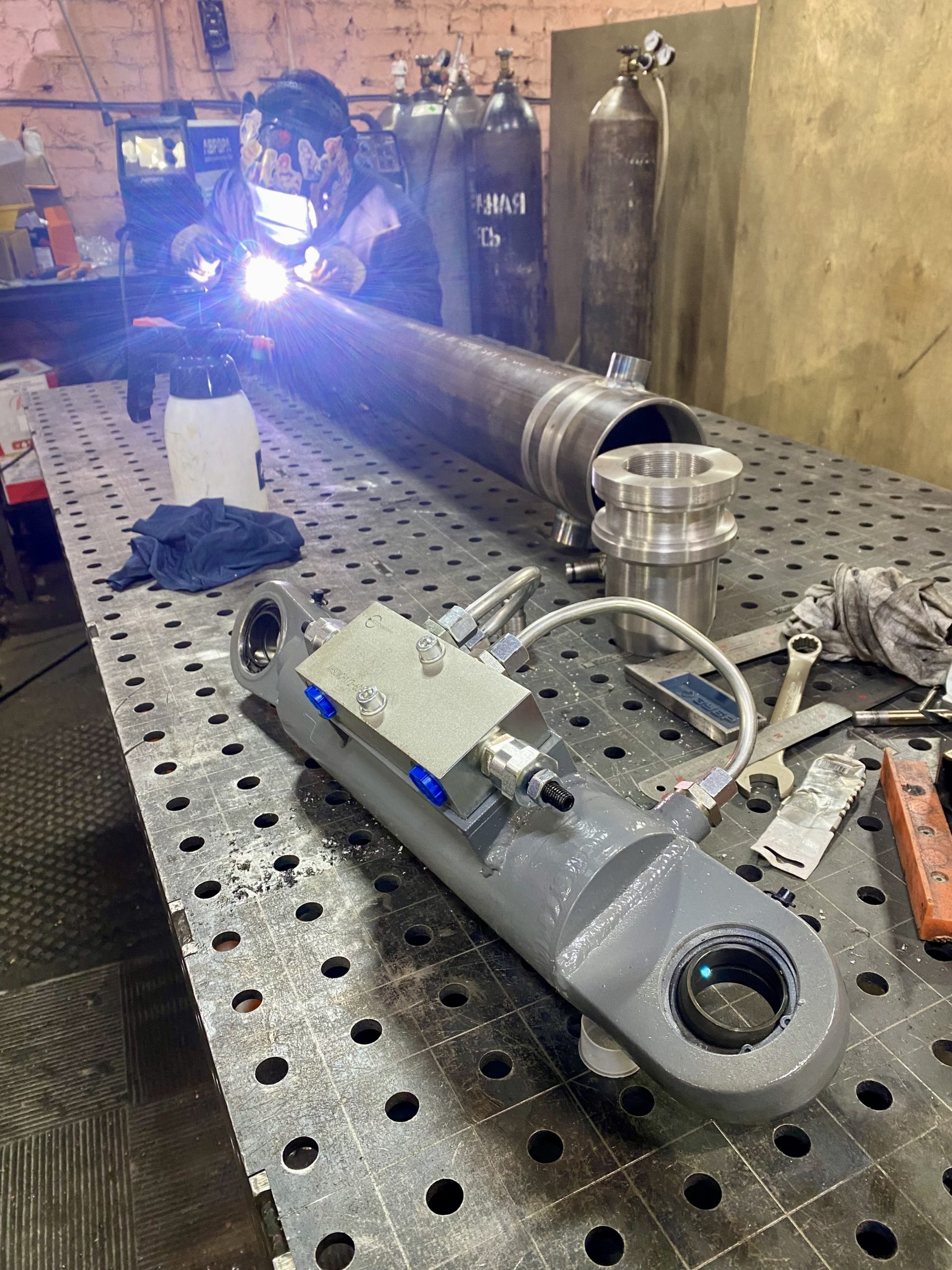 Изготавливаем цилиндры различных типов: штоковые и поршневые, одностороннего и двухстороннего действия, телескопические, сварные и разборные. Штоки выполняем из хромированной стали с индукционной закалкой, что обеспечивает устойчивость к износу и коррозии. Гильзы проходят хонингование для достижения качества поверхности, обеспечивающего стабильную работу уплотнений.
